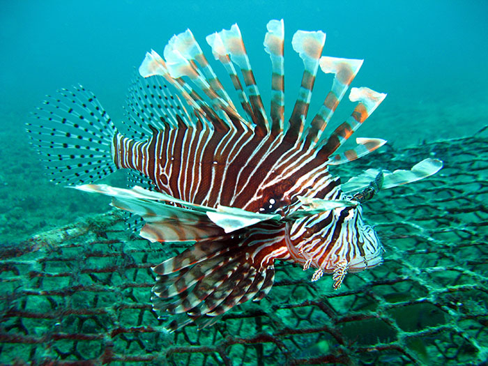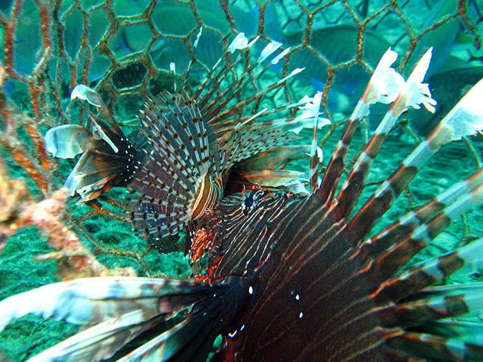 Pescadores de las Islas Vírgenes Británicas están capturando peces león en sus nasas y trampas para langostas. Ha sido reportado que miles de peces león han sido capturados desde su primera avistamiento en las IVB en el 2010, a profundidades que oscilan entre los 150-200´, con varios pescadores capturando un average de 100 lbs por bote por viaje; entre 100-150 nasas son sacadas en cada salida de pesca, el pez león es capturado también en la costa a profundidades hasta de un pie pero en cantidades mucho menores.