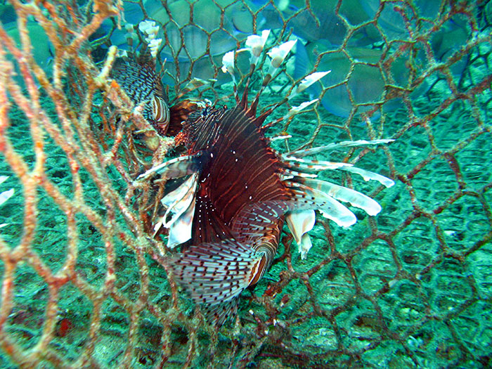 En el marco de la tercera jornada de pesca del pez león celebrada en Chichiriviche estado Vargas, el 27 de Julio del 2013, el equipo de la Fundación Costa de Venezuela, encontró dos nasas extraviadas realizando pesca fantasma en el sector, luego de haber sido retiradas en salvaguarda y protección del fondo marino se pudo comprobar la captura de 32 ejemplares de peces león adultos en las mismas, (según nuestras investigaciones este sería el primer reporte en Venezuela de la captura de esta especie en nasa).